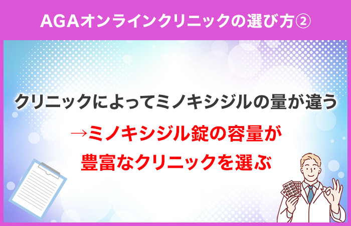 同じAGAオンラインクリニックでも、処方される「ミノキシジル錠の容量」には違いがあります。