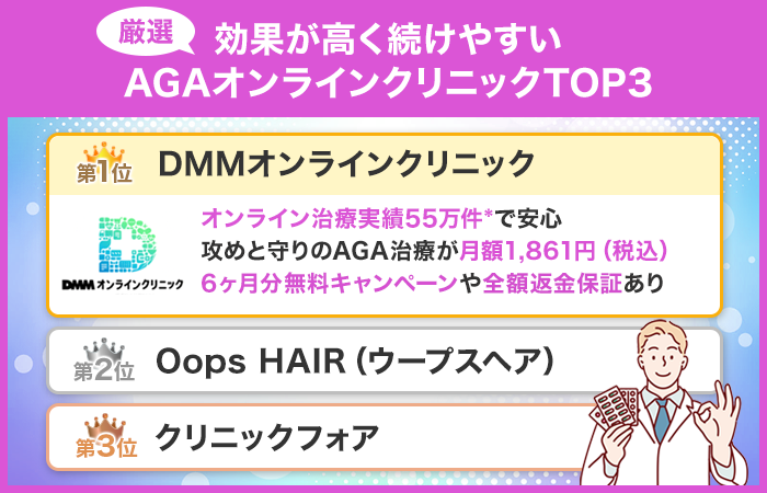 効果が高く続けやすいAGAオンラインクリニックTOP3